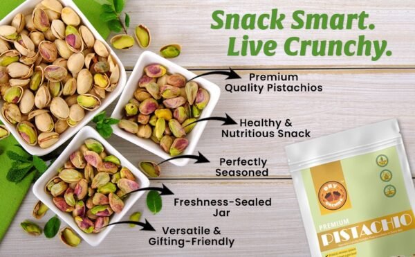 - A traditional Dry fruit: Our raw pistachios are naturally rich in fiber, which may help promote heart health when consumed as part of a balanced diet, making them perfect for on-the-go snacking, lunchboxes, or pantry storage.